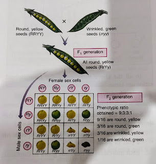 The dihybrid ratio in F2 generation. 9:3:3:1