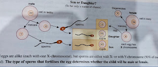 b) if the egg(X) is fused by Y bearing sperm the resulting combination is XY the male constitution and the child born is a Son